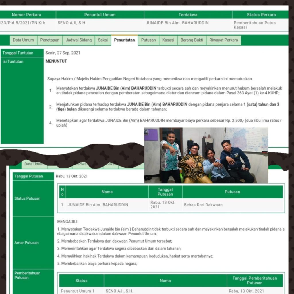 Bermula dari pendampingan perkara Junaide, warga Sesulung, yang telah menjalani persidangan dan mendekam di tahanan atas kejahatan yang tidak pernah dilakukannya. Ia dituduh mencuri kelapa sawit di sebuah blok F59 Kebun Plasma milik perusahaan PT. PSA Paripurna Swakarsa yang terletak di Pondok Labu. Berkat kegigihan kuasanya dalam pembelaan, akhirnya Junaide dibebaskan oleh Majelis Hakim setelah lima bulan dipenjara dan dinyatakan tidak terbukti bersalah.