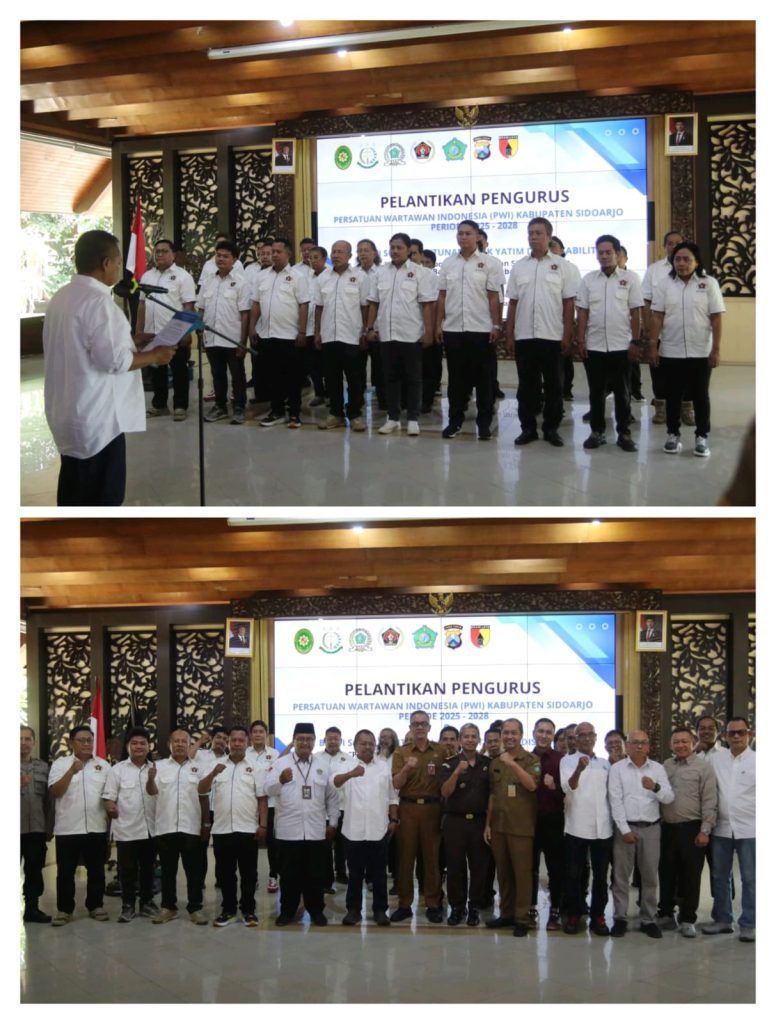 Pengurus Persatuan Wartawan Indonesia (PWI) Kabupaten Sidoarjo periode 2025–2028 resmi dilantik di Pendopo Delta Wibawa, Senin (20/10/2025).