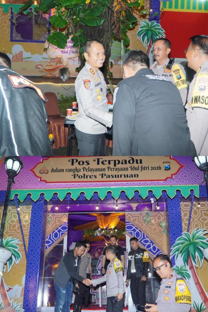 PASURUAN –headlineindonesia.id Kapolres Pasuruan AKBP Harto Agung Cahyono menekankan pentingnya kewaspadaan dan pelayanan humanis kepada petugas saat memantau arus mudik menjelang Hari Raya Idul Fitri 1447 H di Pos Terpadu Simpang 4 Taman Dayu, Pandaan, Kamis (19/3/2026) malam.