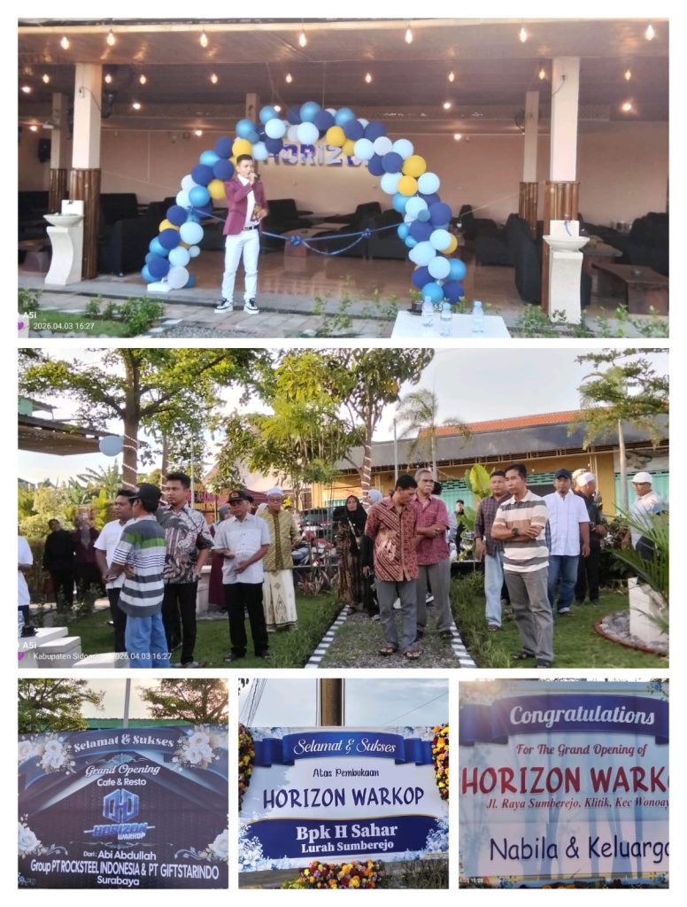 Suasana Penuh Semarak Dan Antusiasme masyarakat mewarnai acara Grand Opening Horizon Warkop yang resmi dibuka pada Jumat (03/04/2026) di Jl. Raya Sumberejo, Klitik, Kecamatan Wonoayu, Kabupaten Sidoarjo.